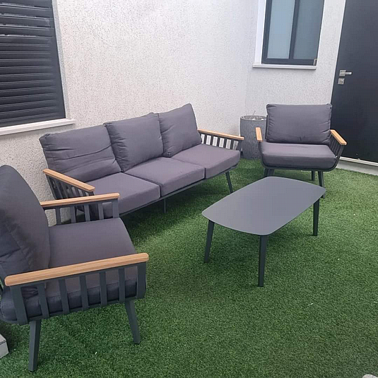 מערכת ישיבה אלומיניום משולב בידיות דמוי עץ איכותי (פאווליואוד)
